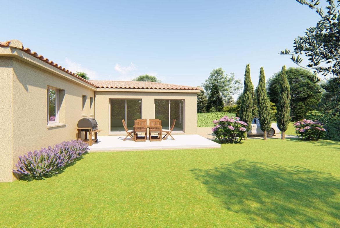 Projet de construction de 100m2 sur un terrain de 685m2, projet de construction personnalisable et prestations au choix (mode de chauffage, aménagement intérieur, carrelage ect…)